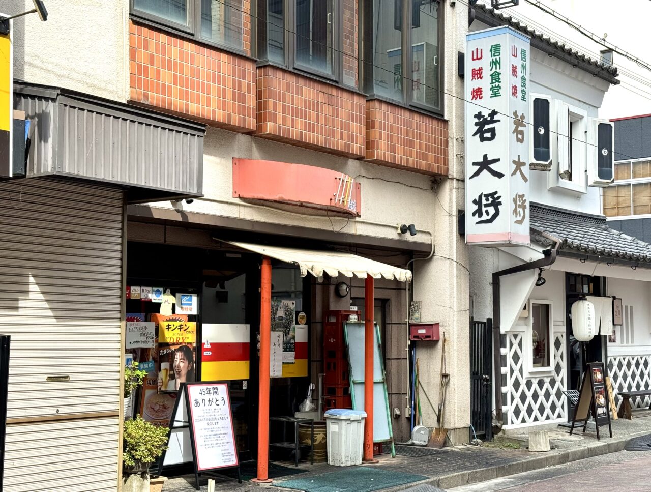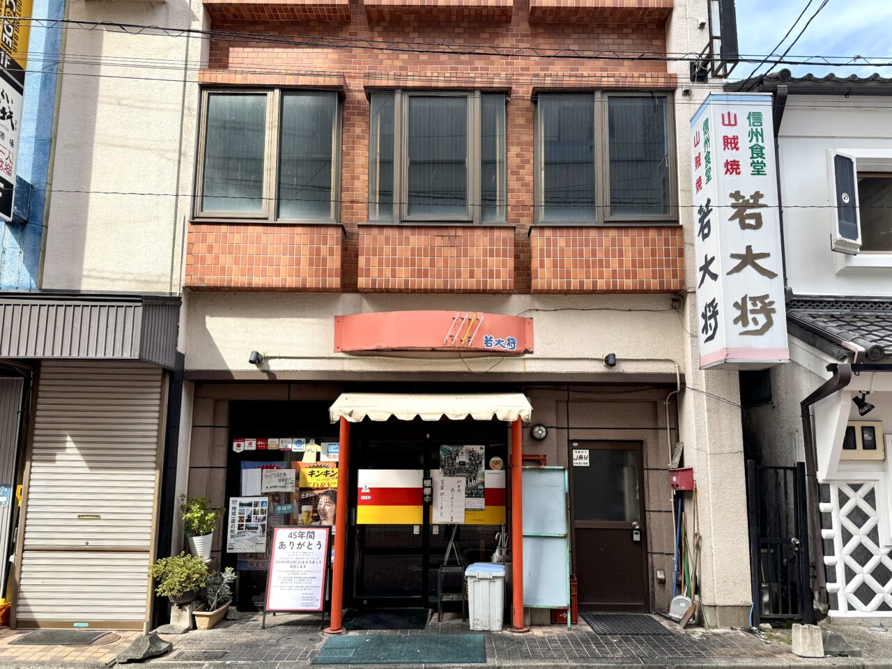 松本駅前で45年にわたって営業を続けてきた信州食堂「若大将」が2025年9月30日(火)をもって閉店しました。店舗へ行ってみると入り口には貼り紙、立て看板がありました。
