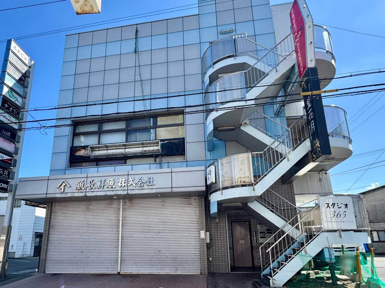 アルプス乙女ユニオンズが公演をする会場の「スタジオ365」は螺旋階段が目印の魚長ビルの2階にあります。
