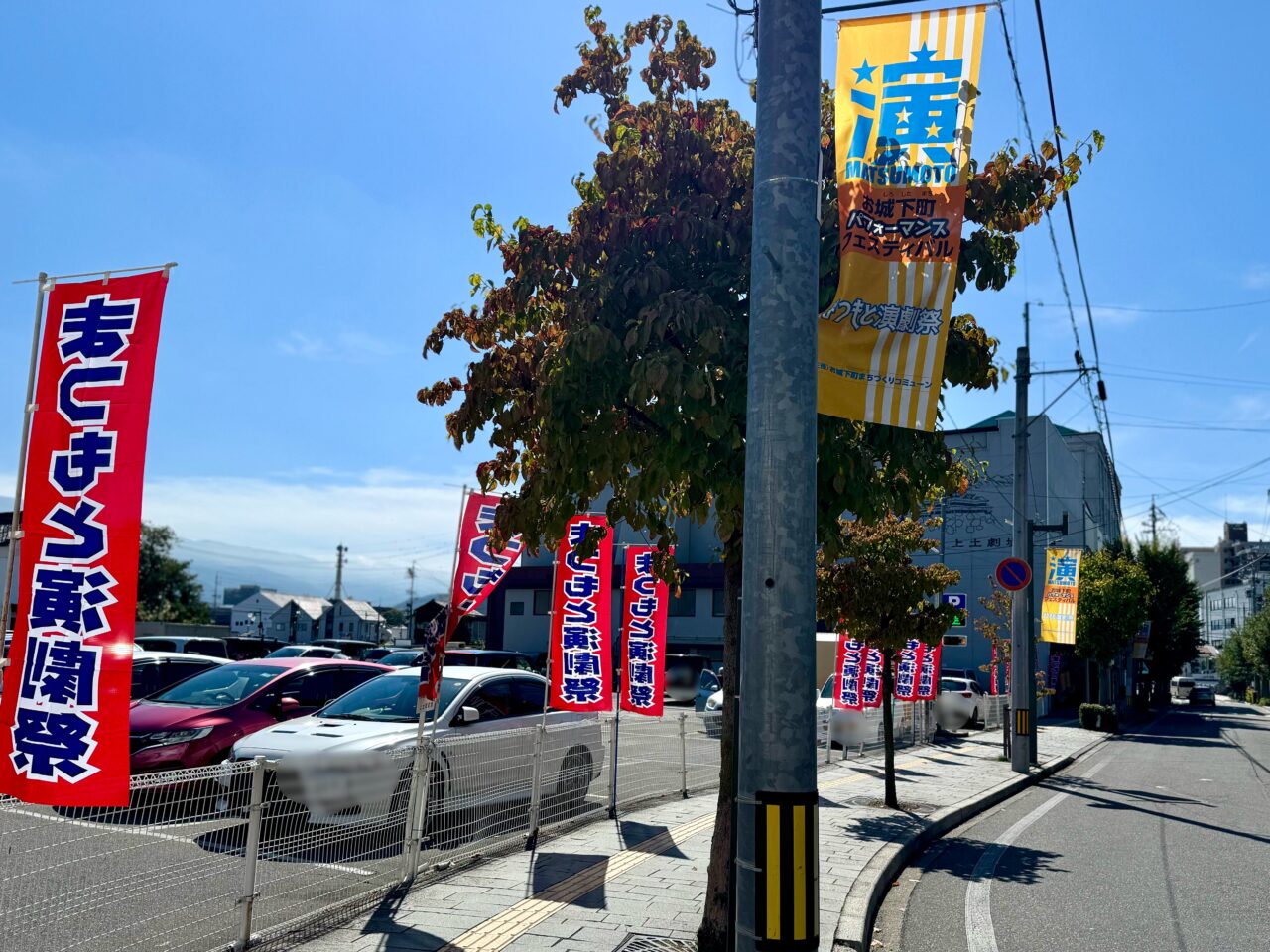 会場の一つ上土劇場近くではすでにまつもと演劇祭の旗などが設置されていて、イベントを盛り上げてくれています。