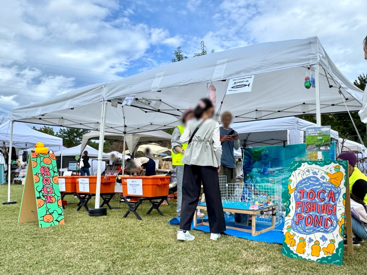 竿を使って銀色の輪っかを釣ると紐で繋がれた魚をGETできる魚釣りゲーム(魚のぬいぐるみです)も楽しそう!