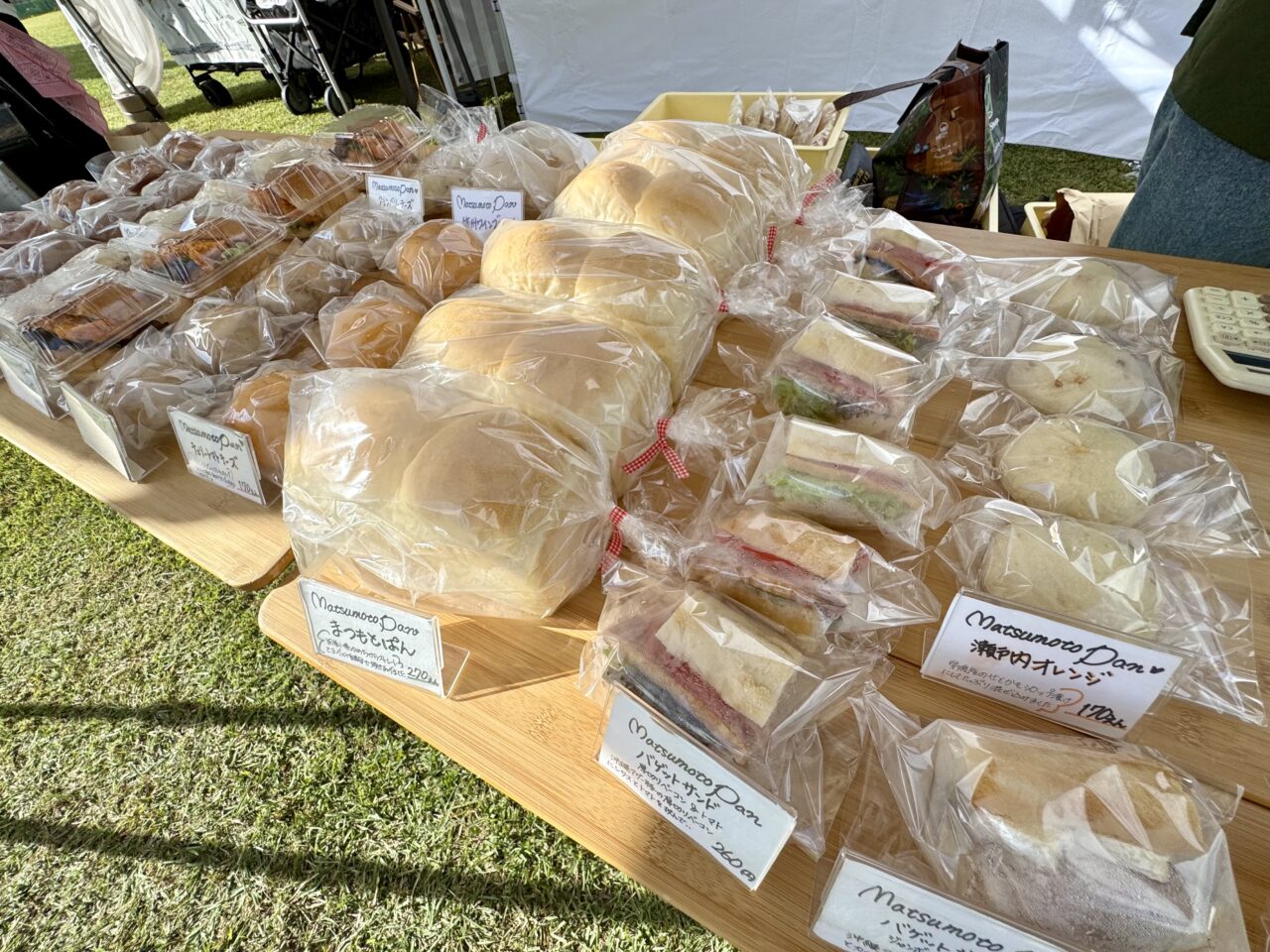 信州産小麦ゆめかおりを使って焼き上げたパン、サンドイッチ、ハンバーガーを販売する「Matsumotopan」はお客様が並んでいました。