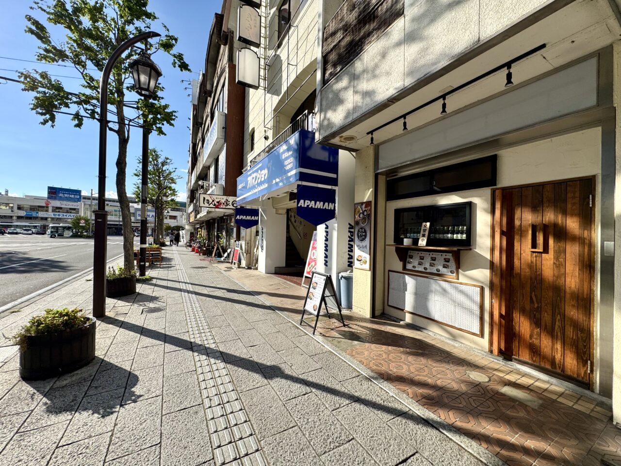 松本駅からすぐ、徒歩で約100メートルほどの場所に韓国料理とお酒「Onnine(オンニネ)」が2025年10月7日にプレオープンしました。下の写真では奥に松本駅が見えています。お店はアパマンショップ松本駅前店の東側、二十騎館第一ビルの1階になります。
