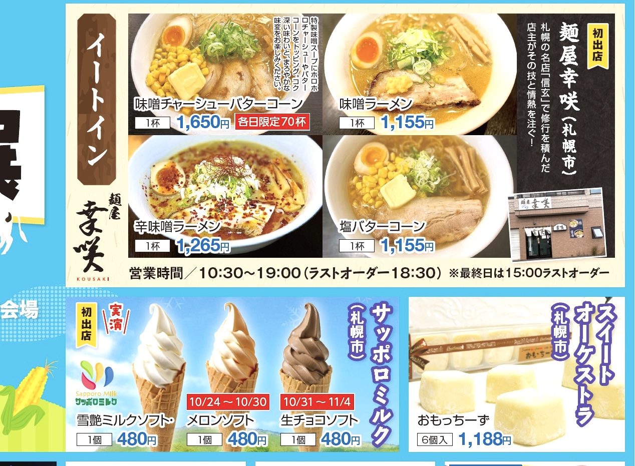また、濃厚な味わいの雪艶ミルクソフトを提供してくれるサッポロミルク(札幌市)も初出店!メロンソフトと生チョコソフトは提供期間が異なりますのでご確認ください。