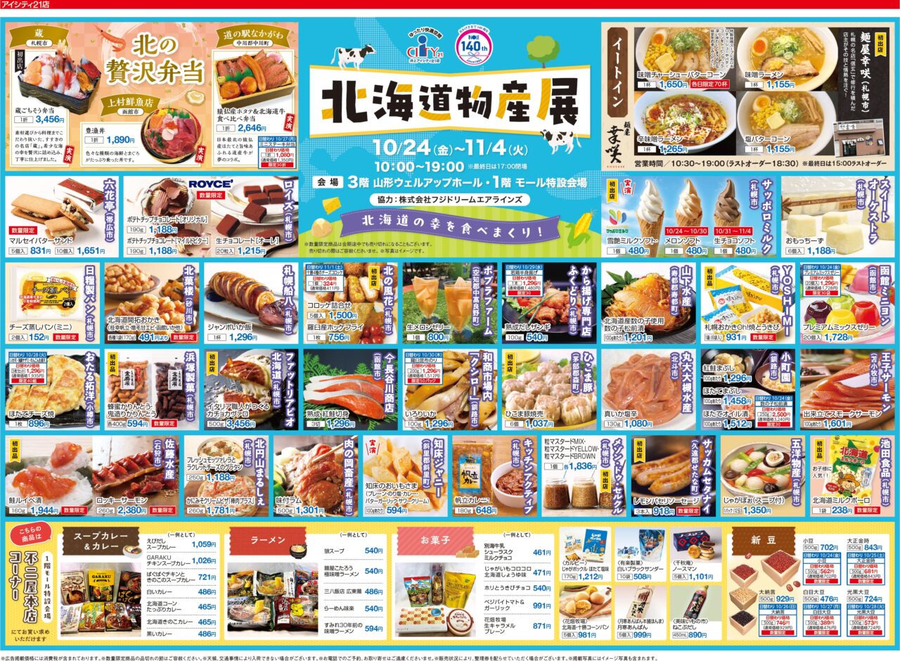 いつも魅力的なイベントを開催してくれるアイシティ21では、北海道各地から、選りすぐりのグルメ・スイーツが一堂に会する「北海道物産展」が開催中です!