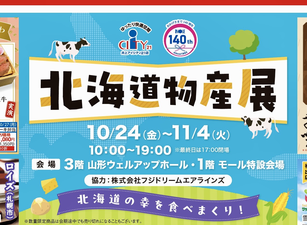 井上本店の北海道物産展を開催していた同時期に今年からアイシティ21にて北海道物産展を開催します。