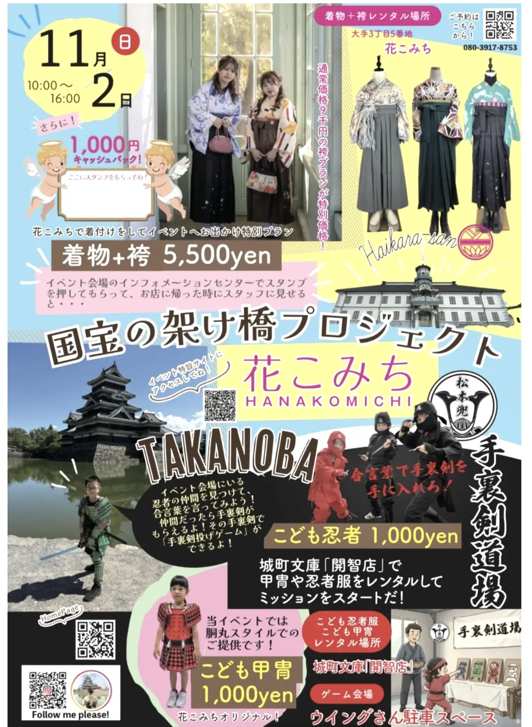 【松本市】子供が喜ぶ「忍者イベント」手裏剣道場も!「国宝の架け橋リビング3」が11/2(日)に開催されます。