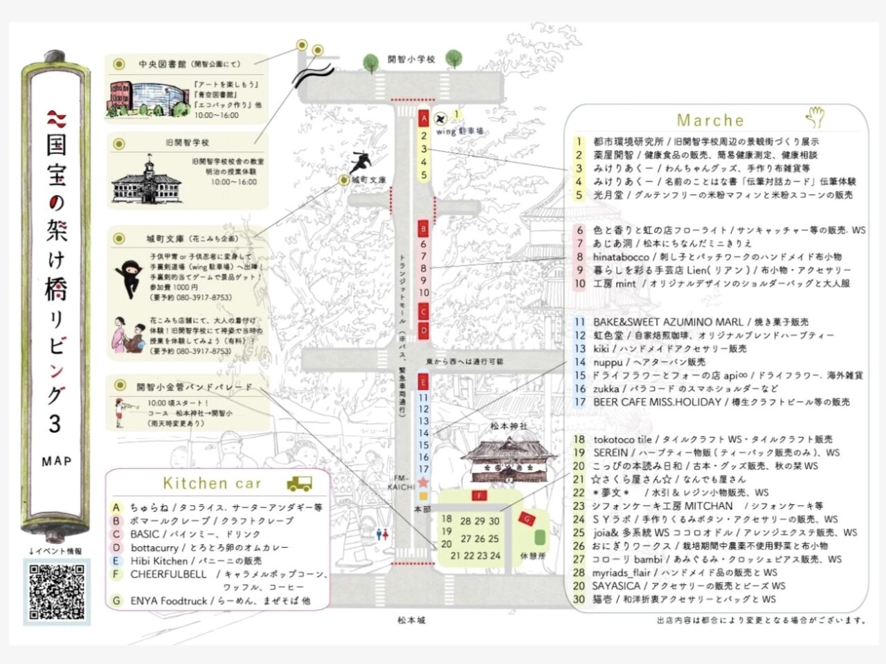旧開智学校校舎と松本城をつなぐ「開智通り」や「松本神社」にキッチンカーやマルシェなどたくさんのお店が立ち並ぶイベント「国宝の架け橋リビング3」が開催されます!