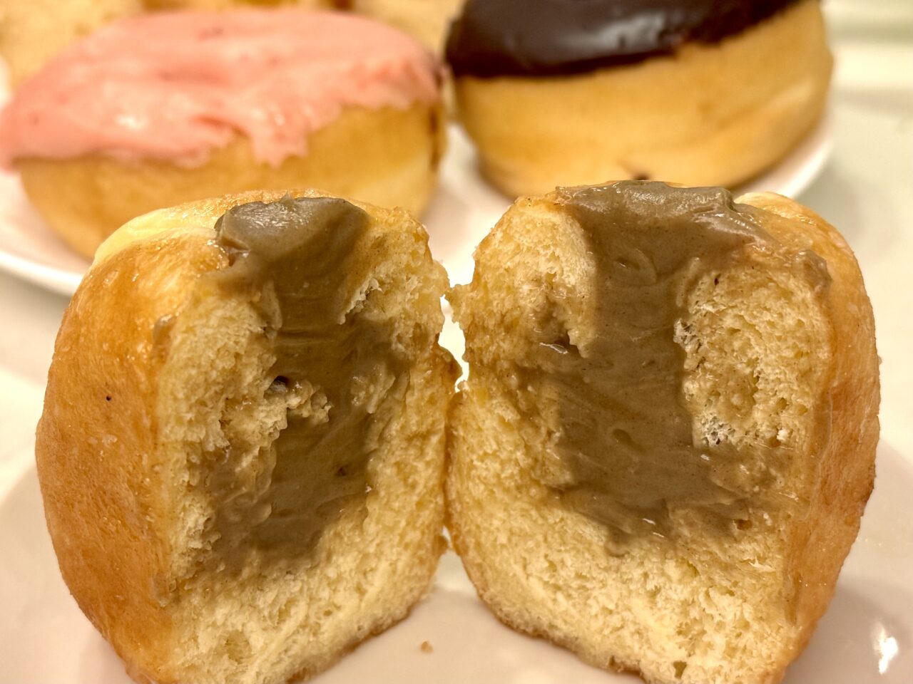 クリームドーナツは切ってみるとこんな感じで中までしっかり入っていました。