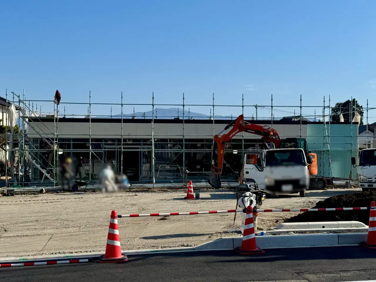 すでに建物の形は出来上がっていましたが駐車場はまだ土の状態です。