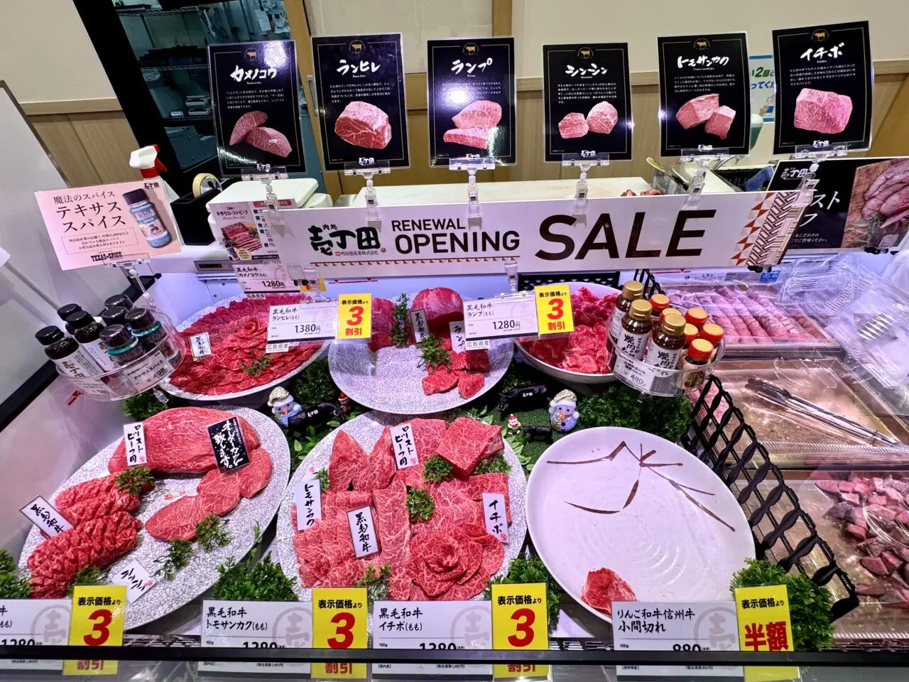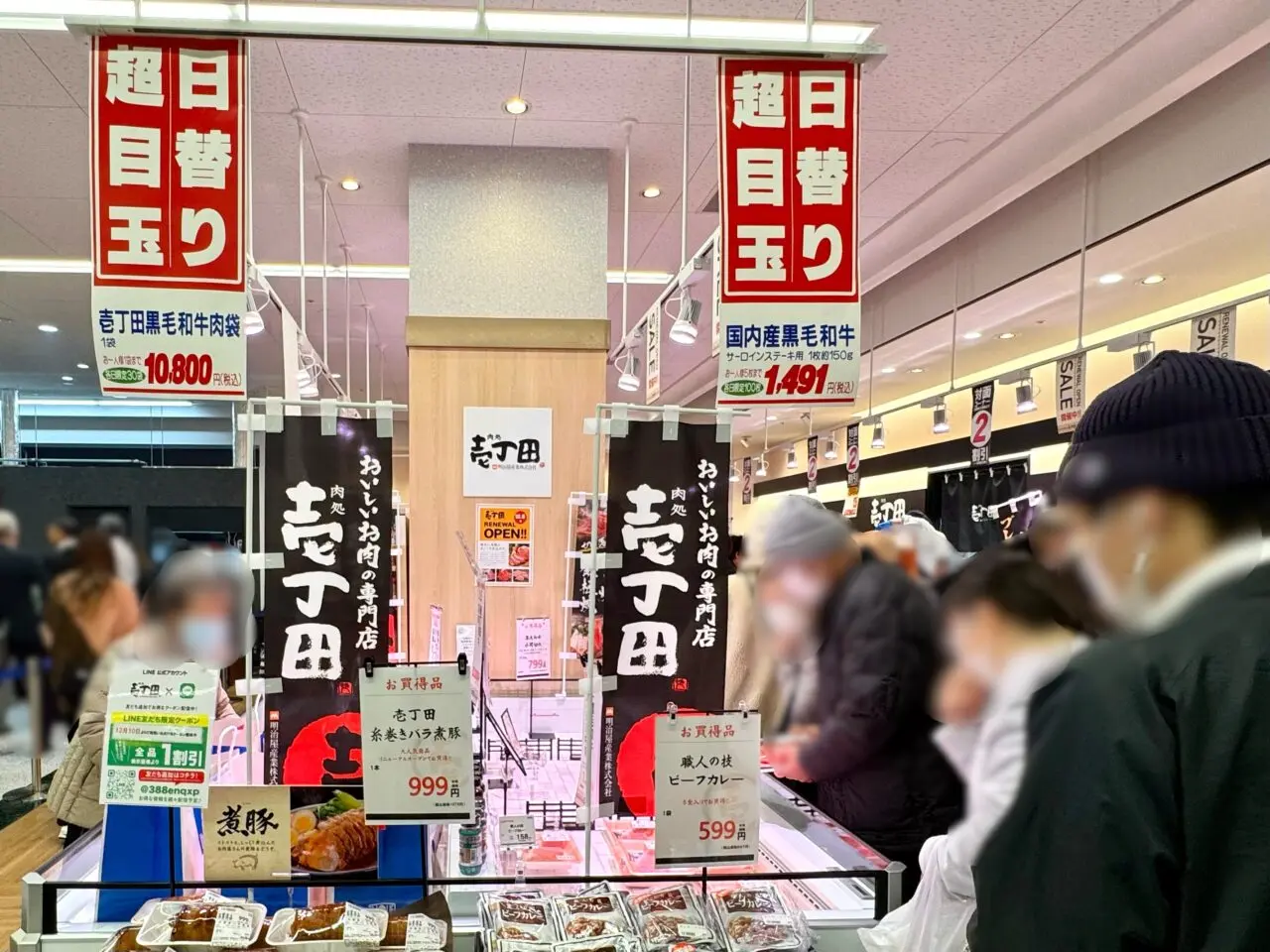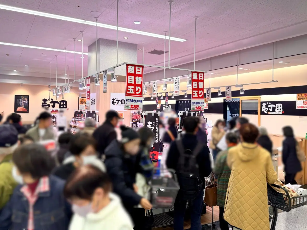リニューアルオープンしたのはお肉の専門店「肉処 壱丁田」です。開店から通路が通れないほどたくさんのお客様で賑わっていました!