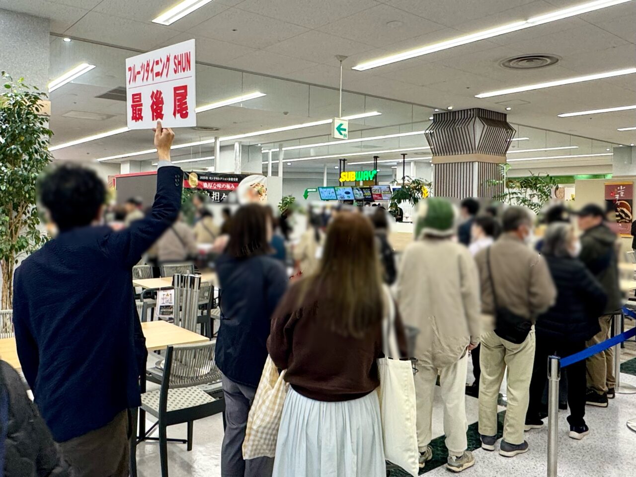 午前10時オープンでしたが、開店前からツルヤ側の入り口には長い行列ができていましたよ!開店と同時にぞくぞくと中へ入っていきます。