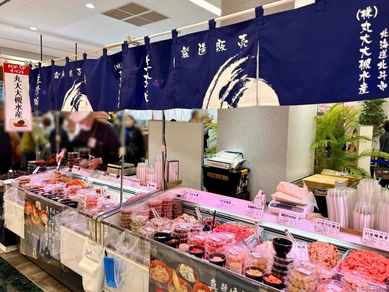 さらにPOP UPのお店も出ているんです。北海道から「丸大大槻水産」がたくさんの生鮮珍味を販売していました。