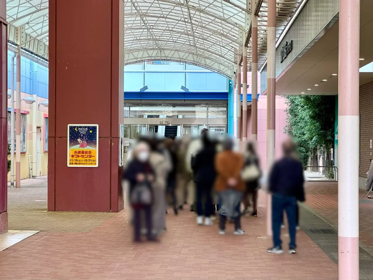 店舗を囲むように長い行列ができ「最後尾」の案内を掲げている係の方がいました。チラシには12月5日〜7日、各日50セット限定商品などがありますのでみなさんオープンと同時に並んでいました。