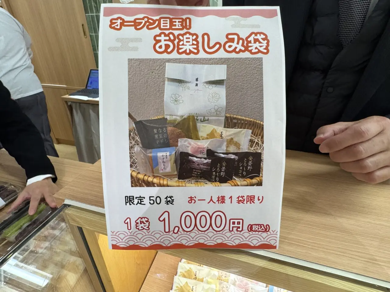 お店の方によると、オープン目玉として用意した「お楽しみ袋」は開店後すぐ行列ができてあっという間に売り切れてしまったとのこと!すごい人気です。