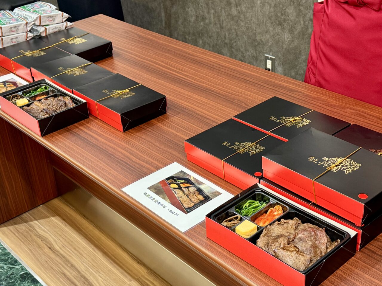 下の写真、左奥は「特選飛騨牛カルビ弁当」、右手前は「特選赤身焼肉弁当」です。