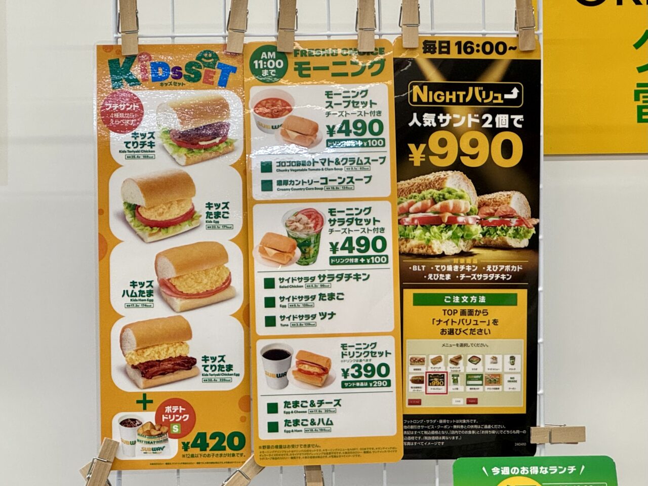 ご注文口のところにはメニューがありました。キッズセットやモーニングなどはお手頃な価格でいただけるのが嬉しいですね。