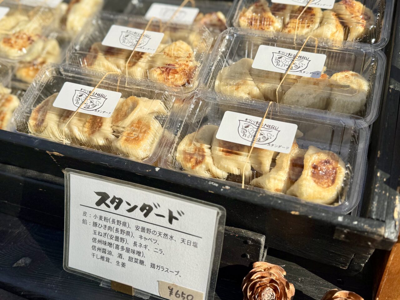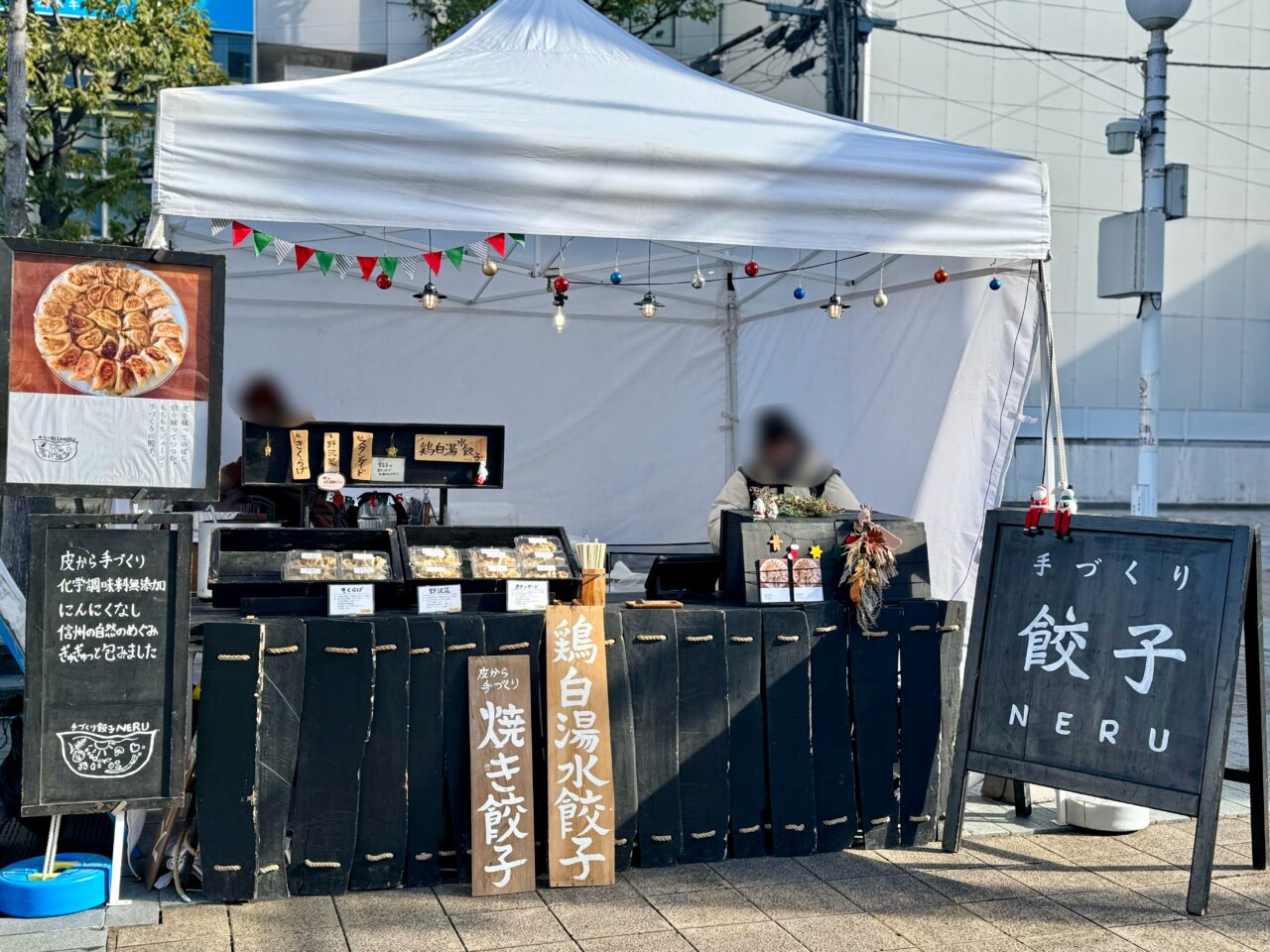 黒い店構えが素敵なお店で手づくり餃子を販売していたのは「手づくり餃子NERU」です。