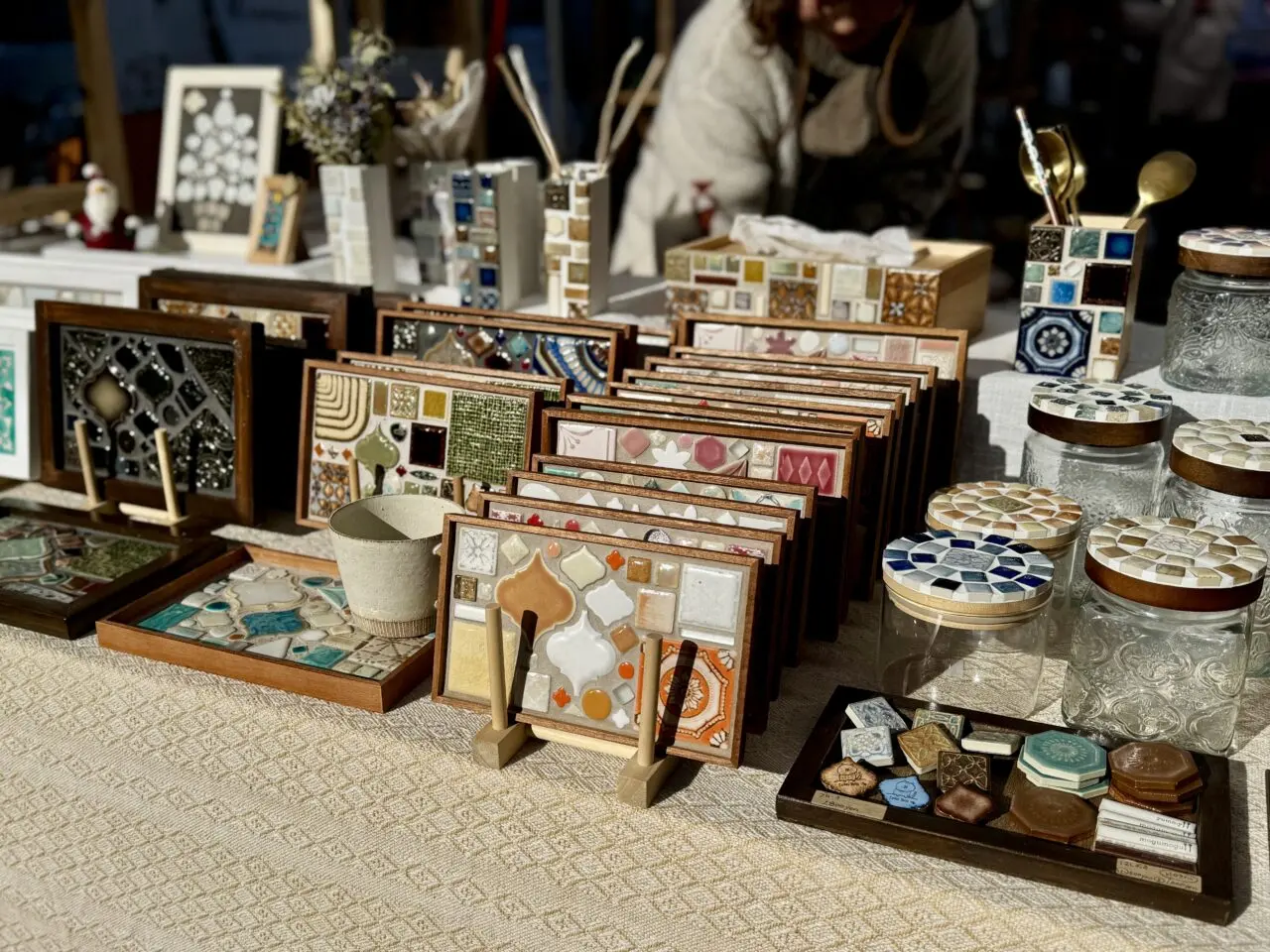 松本市のタイルクラフトショップ「tokotoco tile」ではたくさんのタイルを使った商品が並んでいました。
