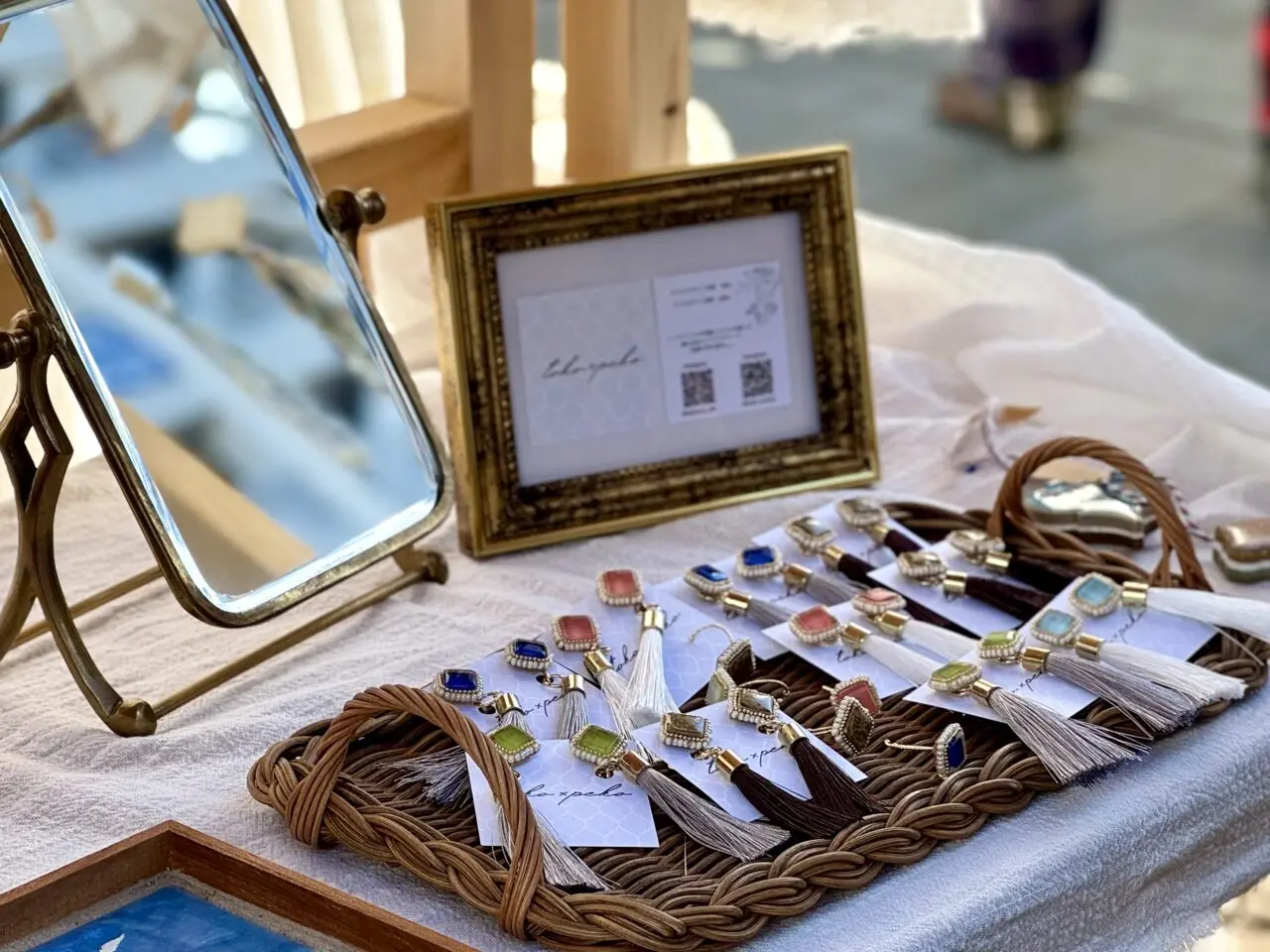 アクセサリーもありました!ガラスタイルのピアス・イヤリング。タイルが宝石のように綺麗ですね。