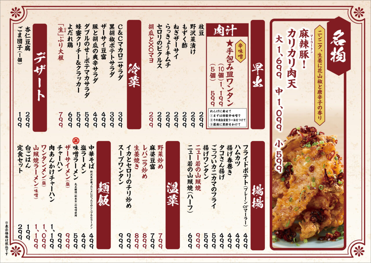 2025年12月10日(水)、松本駅前にグランドオープンオープンした町中華酒場「ニュー若大将」では12月16日(火)からランチ営業も始まりました!