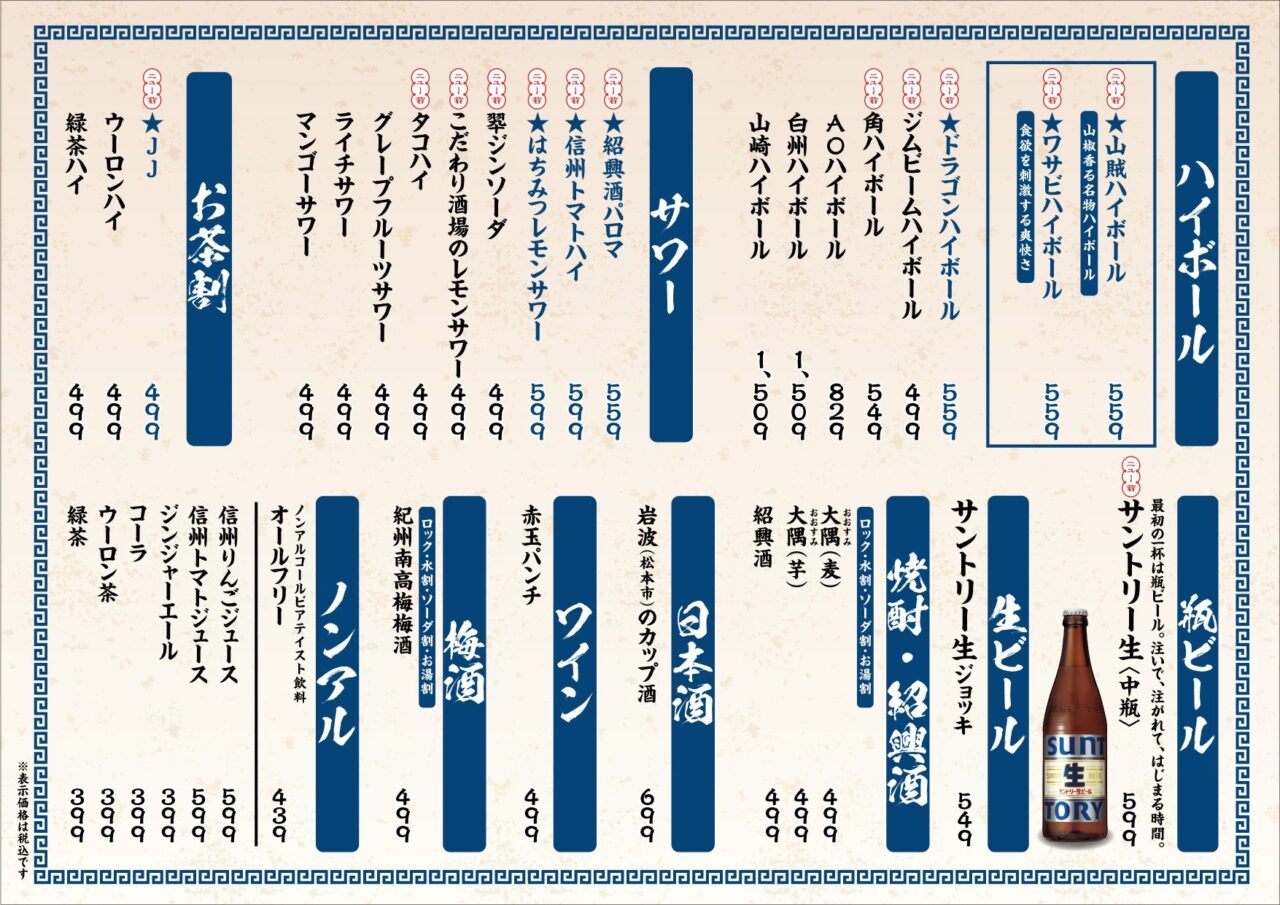 飲み物もハイボール、サワー、ビール、ジュースなどもあります。