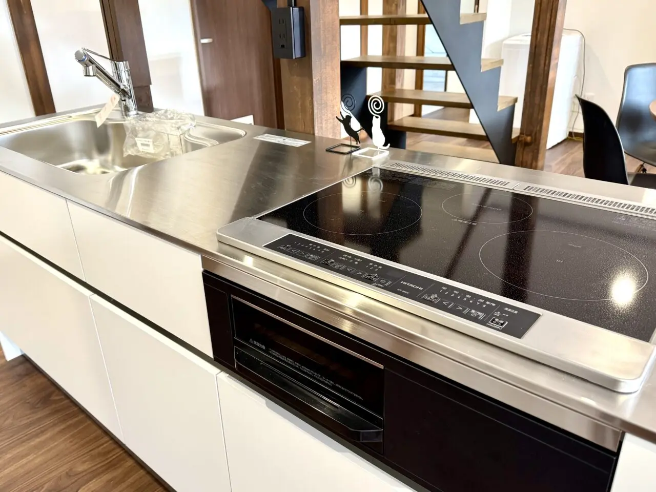 リビングに戻ります。キッチンはIHでお手入れがしやすそうです。