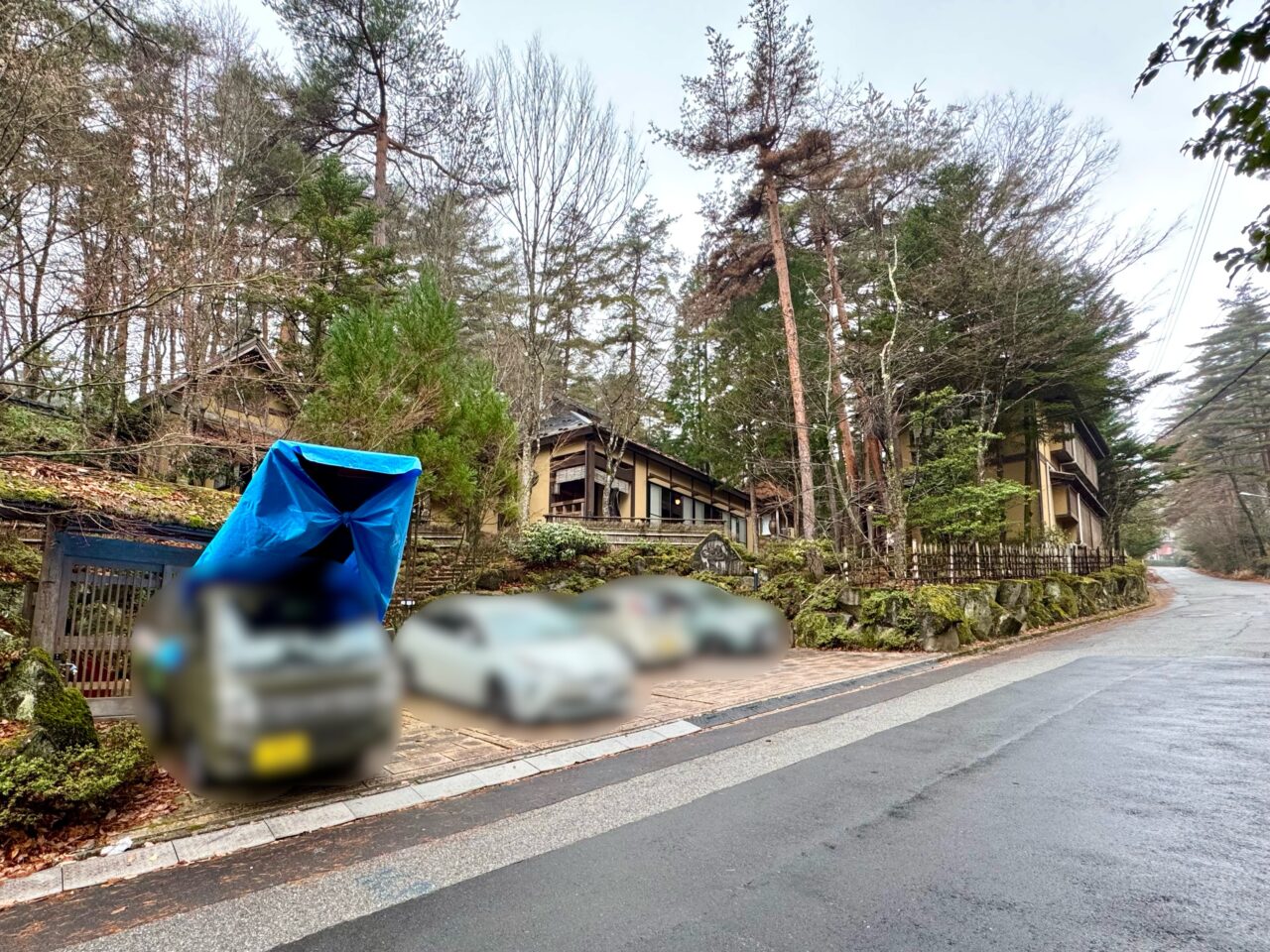 下の写真が駐車場です。こちらから店舗までは2つのルートがあります。