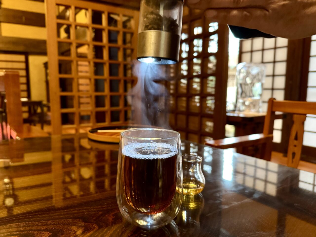 そのお隣は、特徴的なデザインの椅子とテーブルのお席。