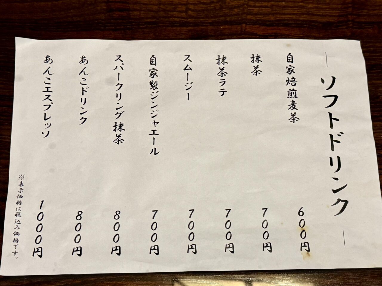 - 自家焙煎の麦茶 (温かな麦茶、冷たい麦茶)