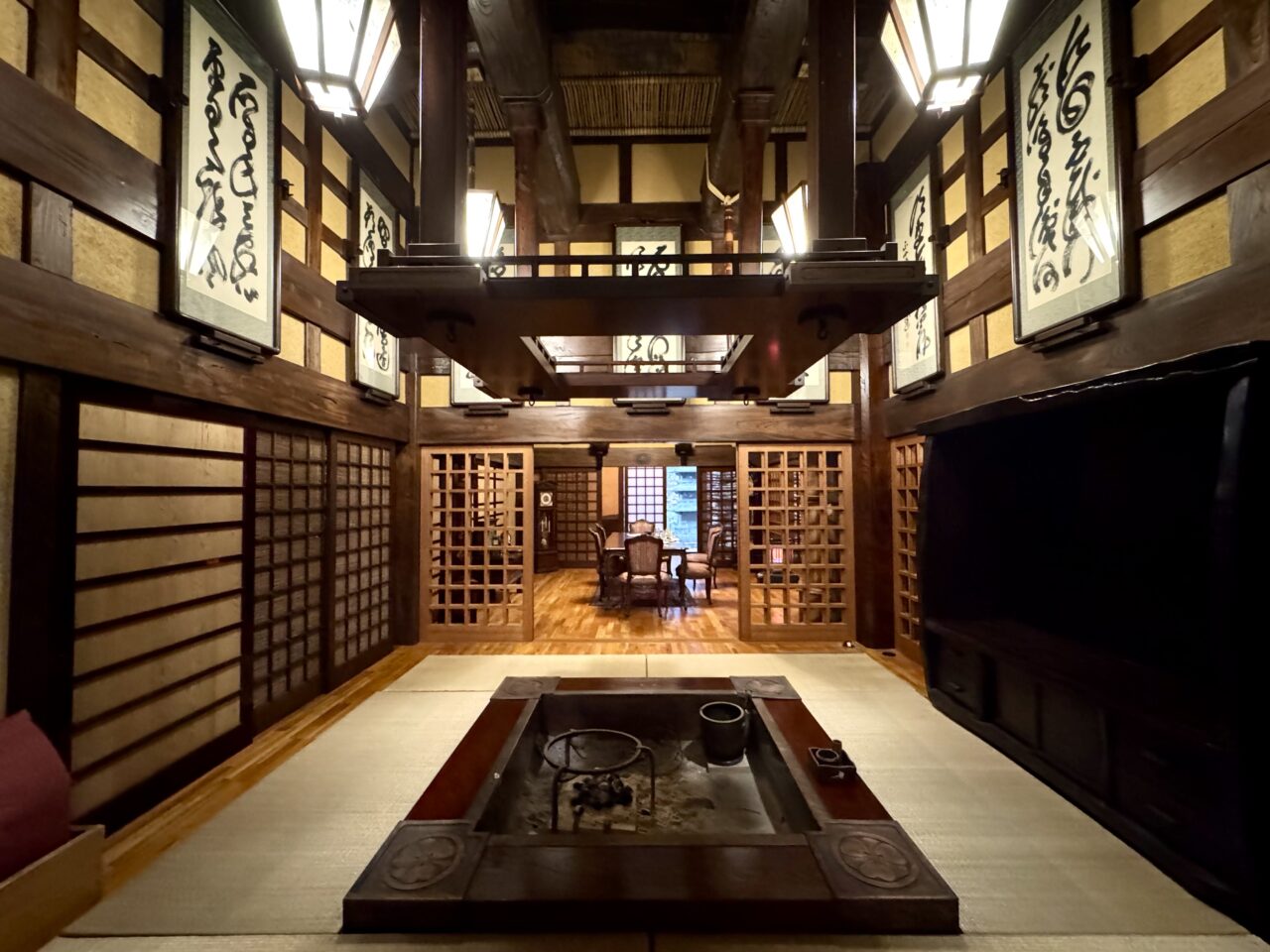 囲炉裏の部屋は額に入った書が飾られています。