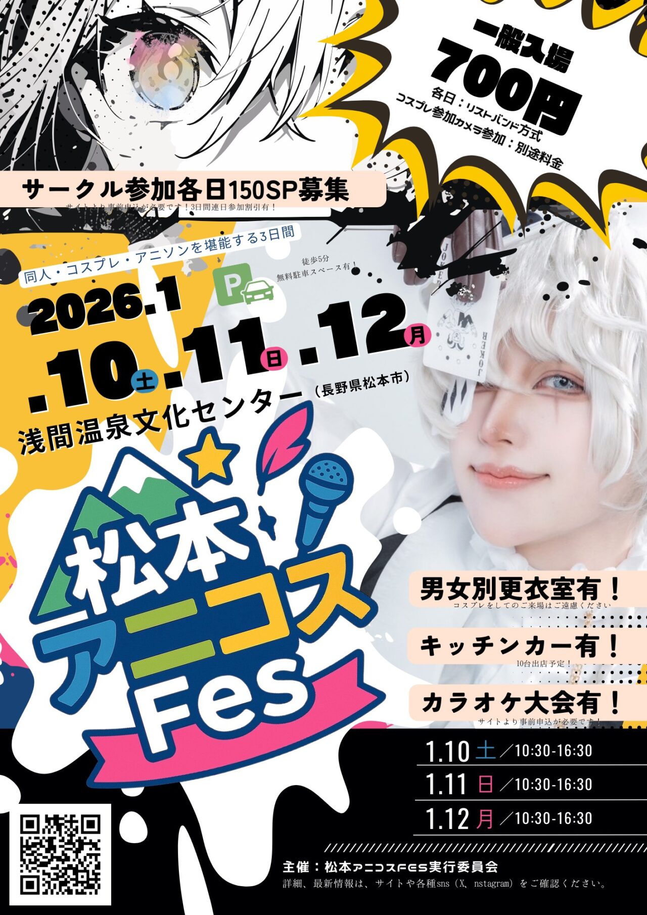 【松本市】2026年最初の気になるイベント!コスプレ・アニソンなど「松本アニコスFes 」が浅間温泉文化センターで1/10〜1/12開催。無料駐車場有。