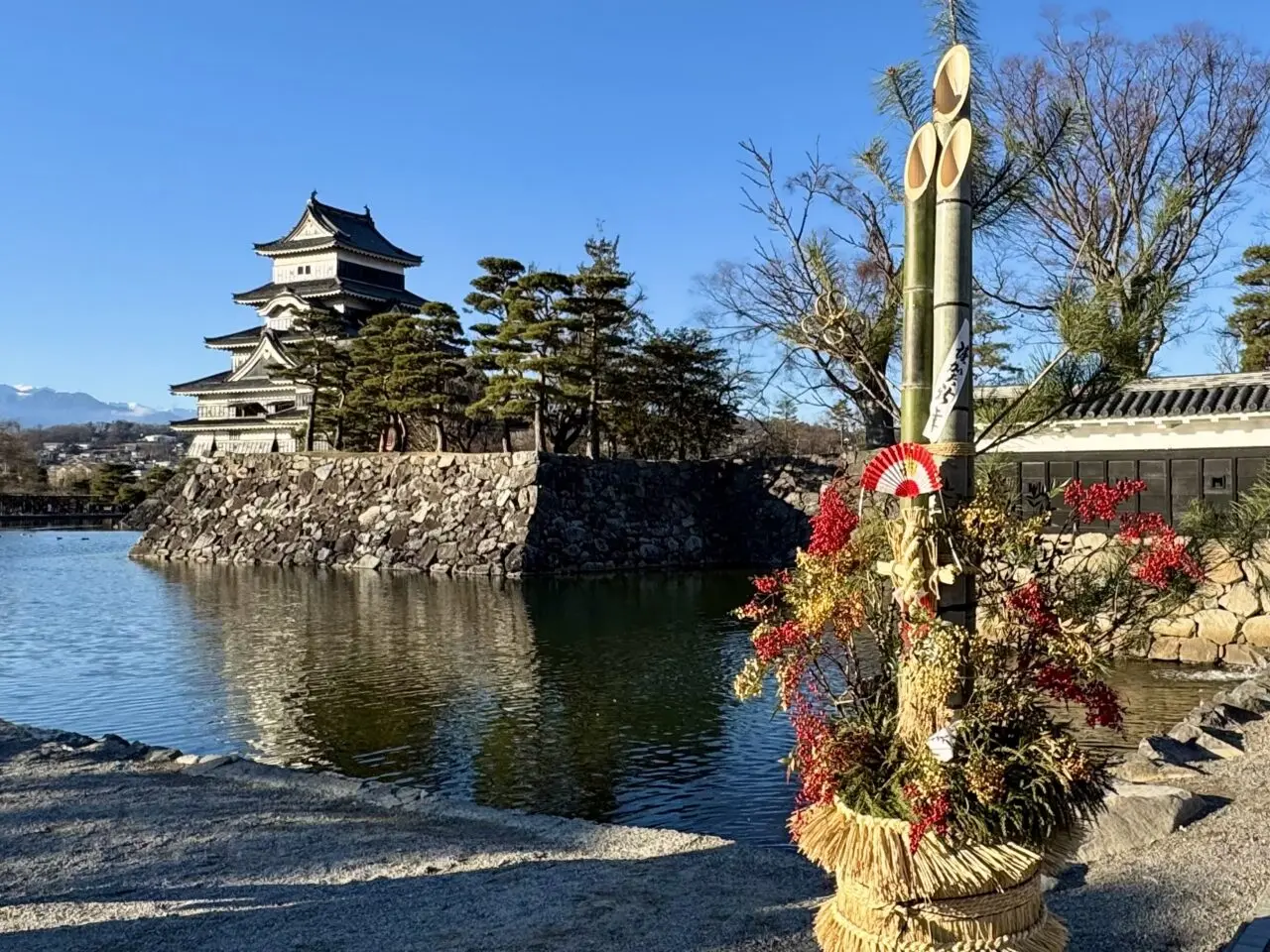 国宝松本城の本丸庭園への入り口には大きな門松が飾られていました。