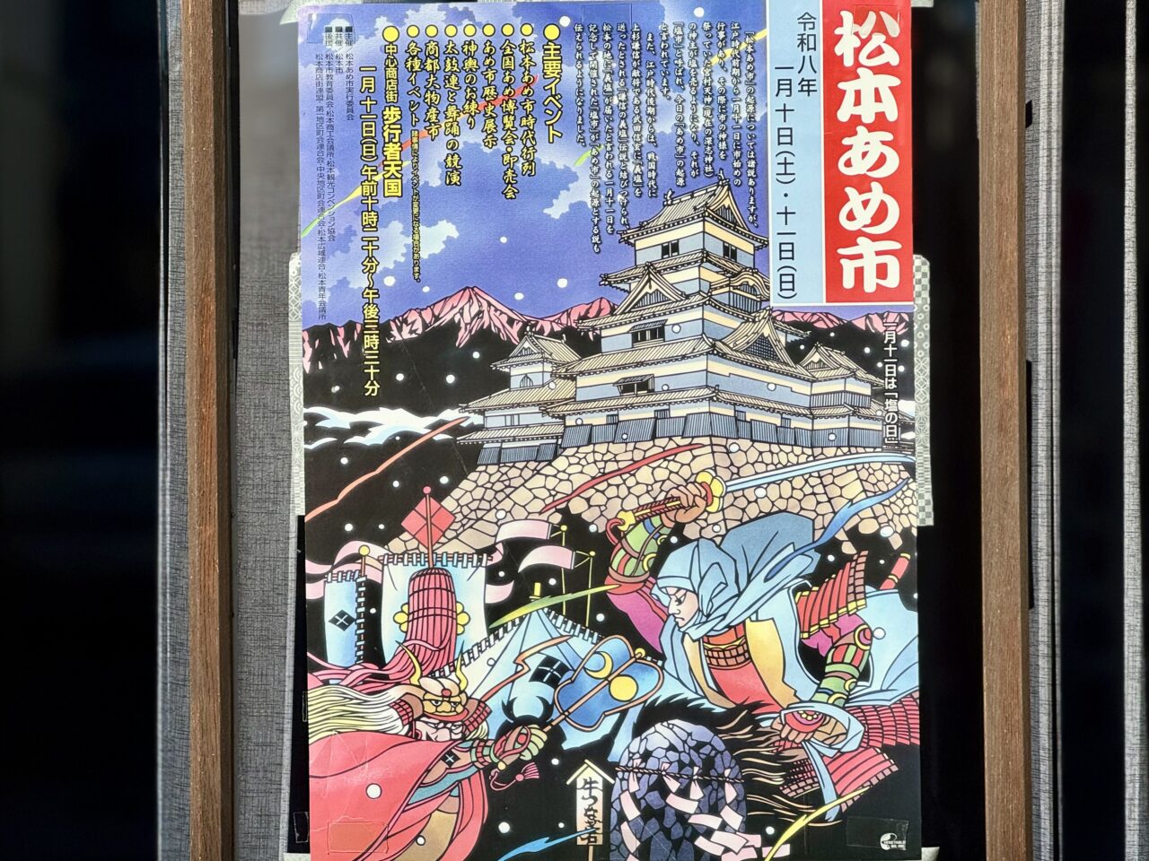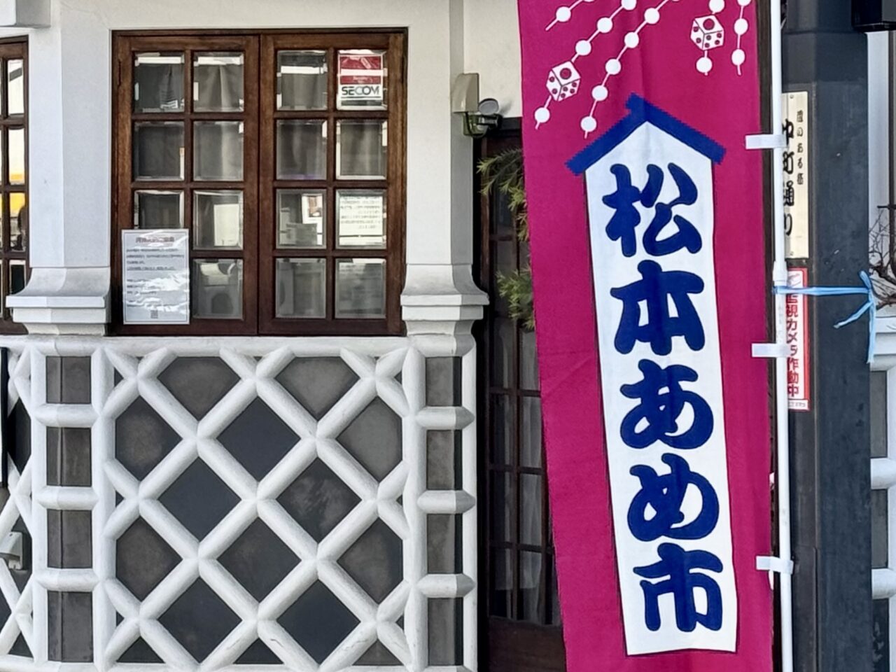 新春の伝統行事「令和8年松本あめ市」が今年も開催されます。中町通りにはポスターが貼られていたり、のぼり旗も置かれていて、もうすぐ松本あめ市が始まるんだなあと感じさせてくれます。