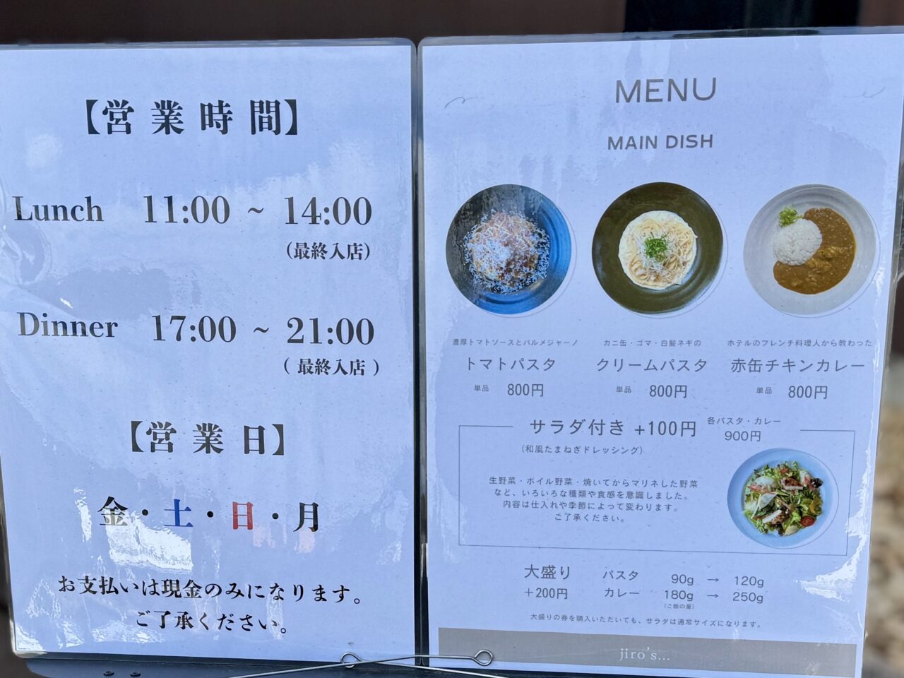 松本市元町にパスタとカレーのお店「jiro’s(ジローズ)」が2026年1月9日にオープンしたとの情報提供をいただき現地へ確認に行ってみました。