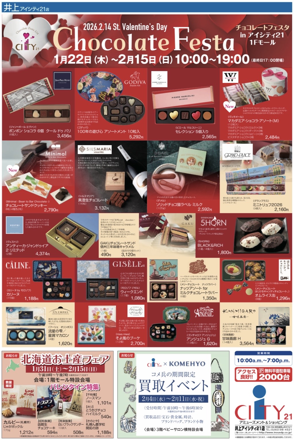 山形村にあるアイシティ21では魅力的なイベントが開催中です!アイシティ21の広い店内でイベントを楽しんだり、お買い物をしたり、美味しいフードをいただいたり、寒さを気にせず過ごせます♪開催中のイベントをチェックしてみましょう。