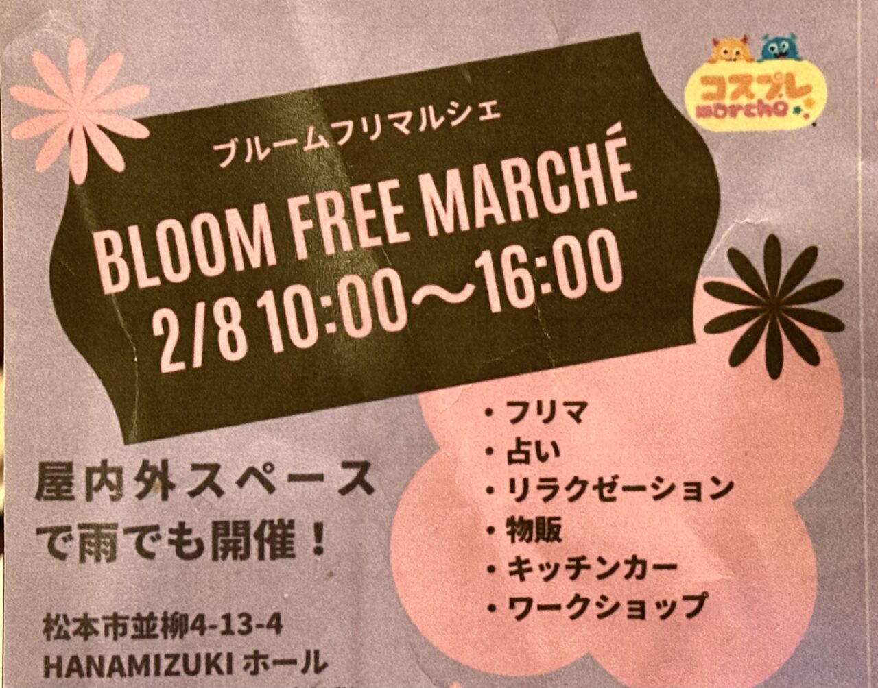 【松本市】ドレスコードは花!並柳にある「HANAMIZUKIレンタルスペース」で「bloomフリマルシェ」が2/8(日)開催!