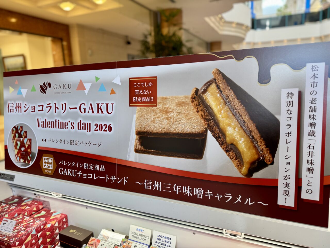 バレンタイン限定商品として松本市の老舗味噌蔵「石井味噌」と特別コラボした「信州三年味噌キャラメル」が販売されていました。