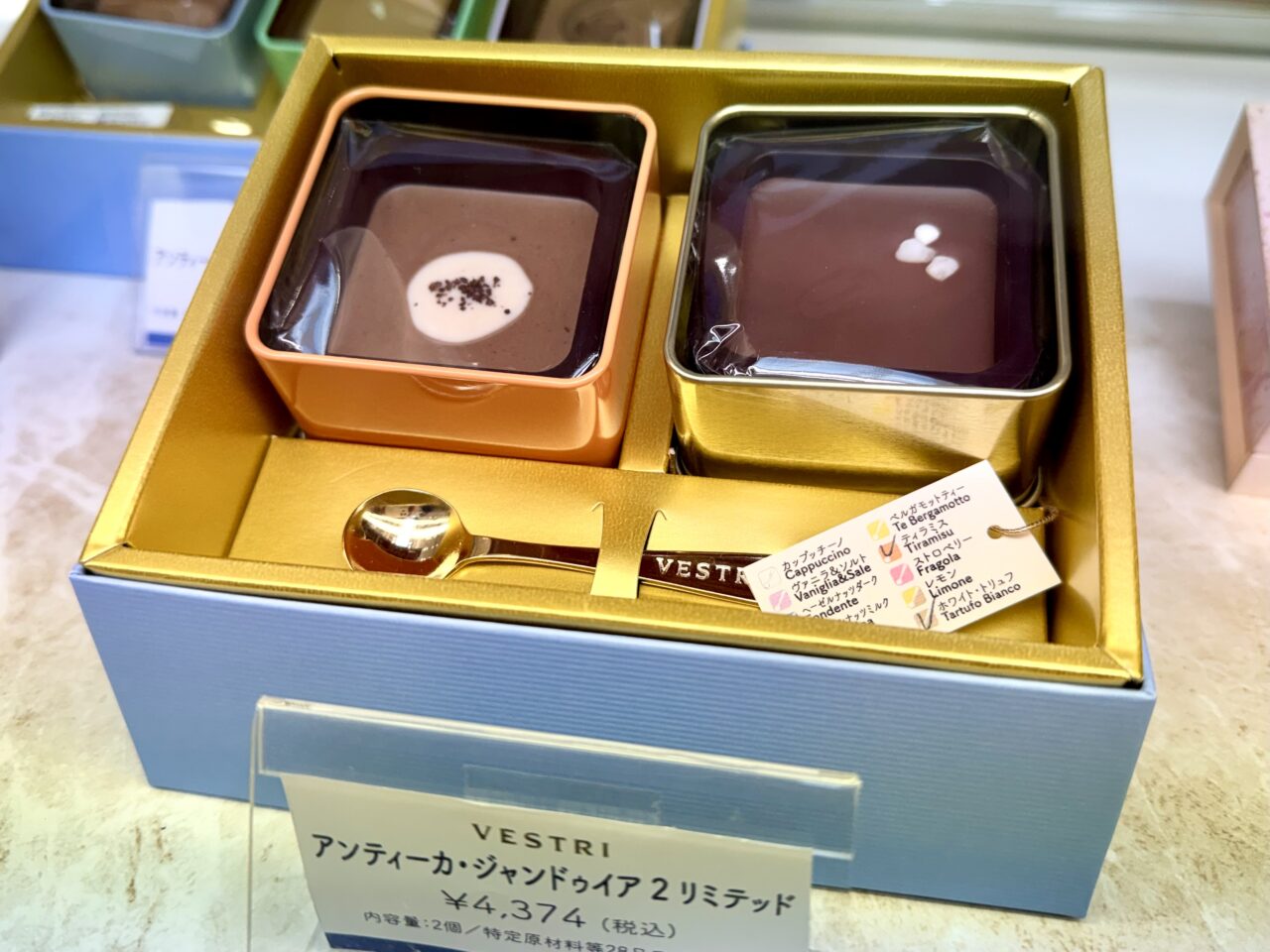 こちらは、金のスプーンですくって食べるチョコレート、VESTRIの商品です。