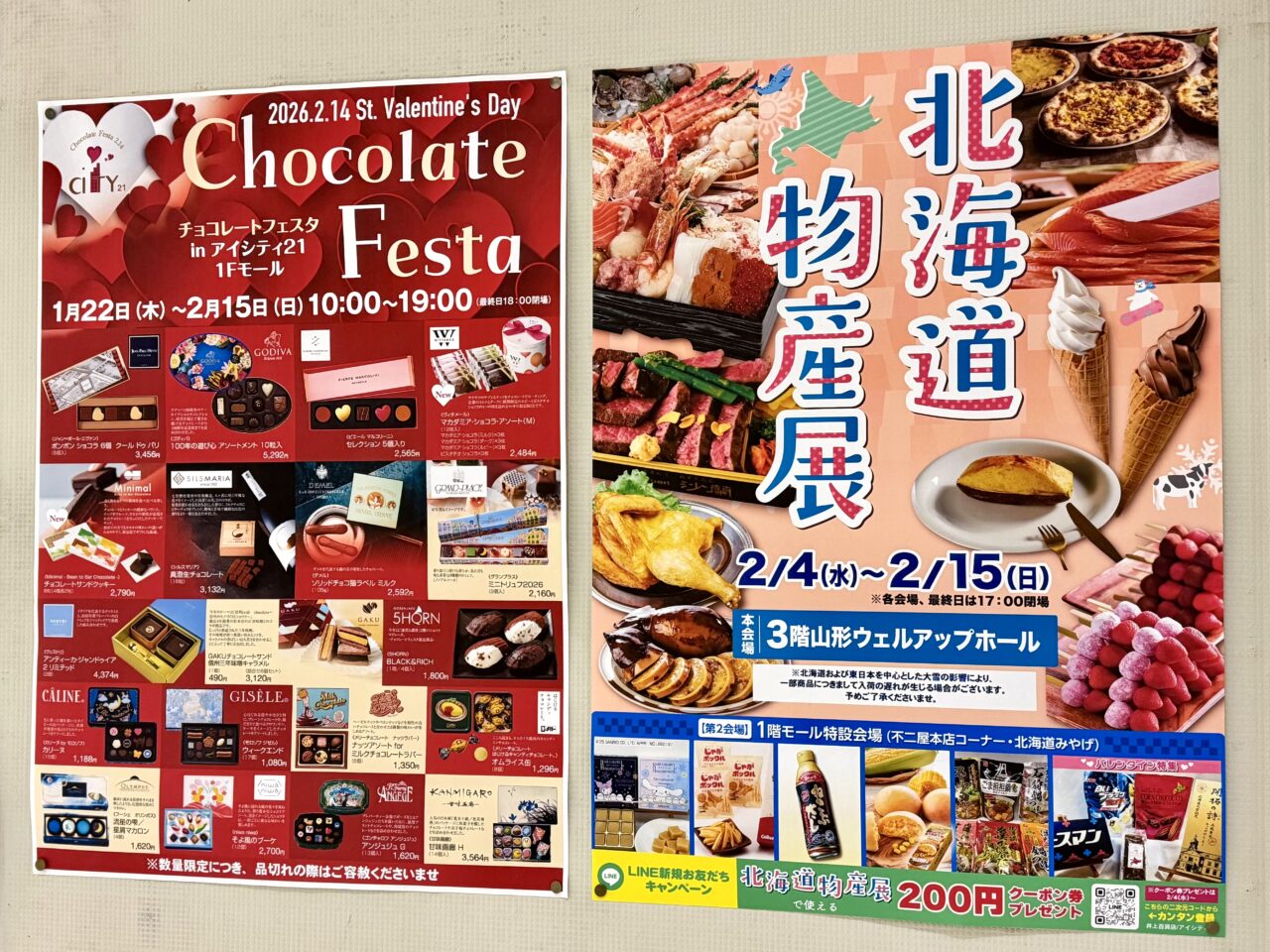 「チョコレートフェスタ」と「北海道物産展」開催中のアイシティ21へぜひお出かけしてみてください。