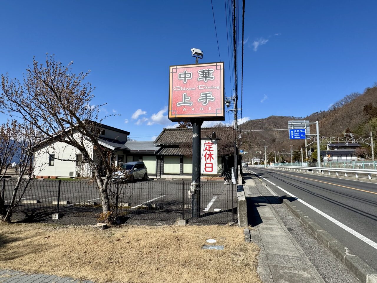 安曇野市豊科田沢の国道19号線沿いにある「中華 上手(わで)」が2026年3月末で閉店してしまうという情報提供をいただき現地へ行ってみました。道路を挟んだ東側には山が見えていて、のどかな場所になっています。