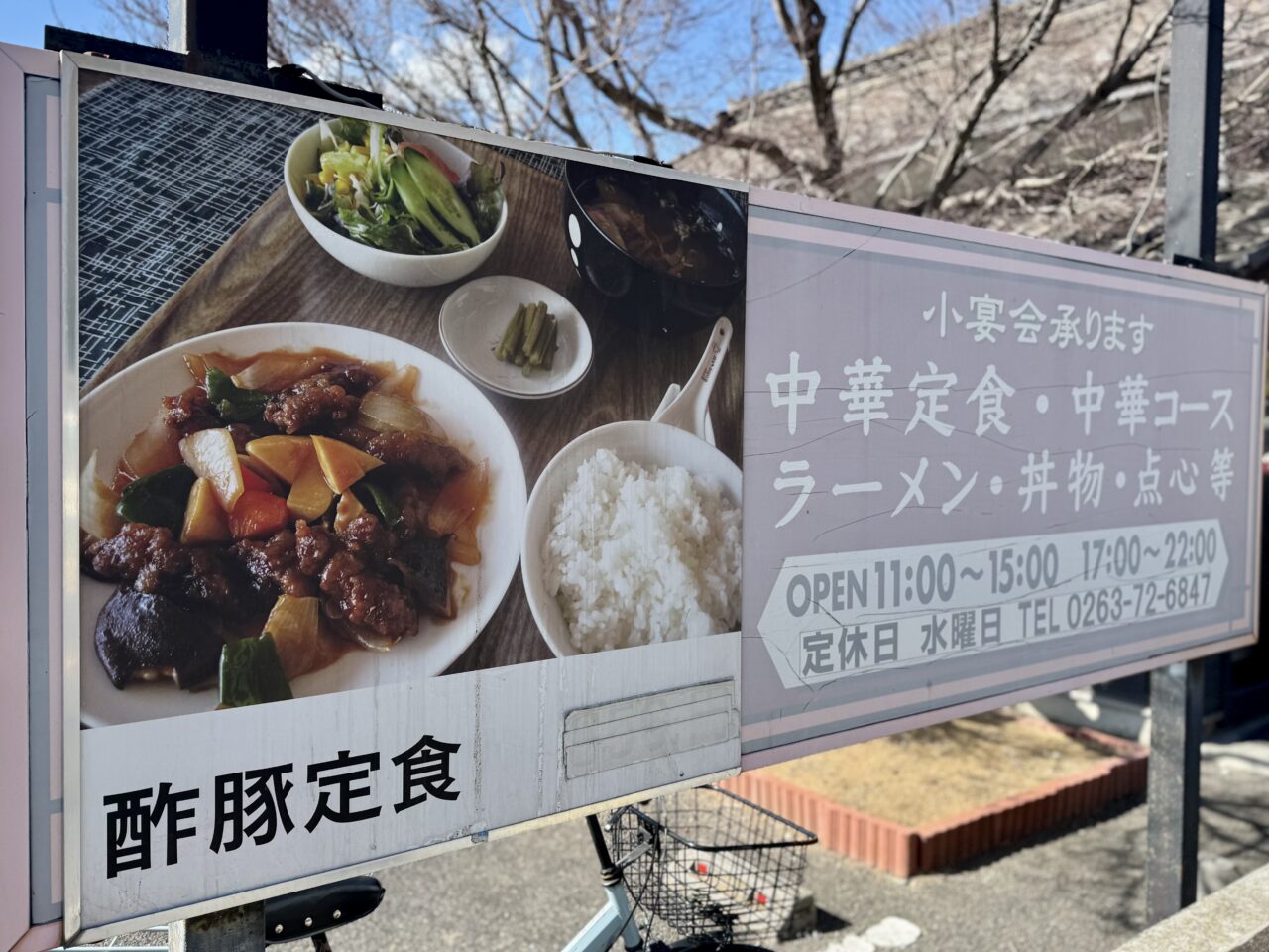 国道沿いの看板には酢豚定食の写真と一緒に、中華定食・中華コース・ラーメン・丼物・点心等とありましたよ。