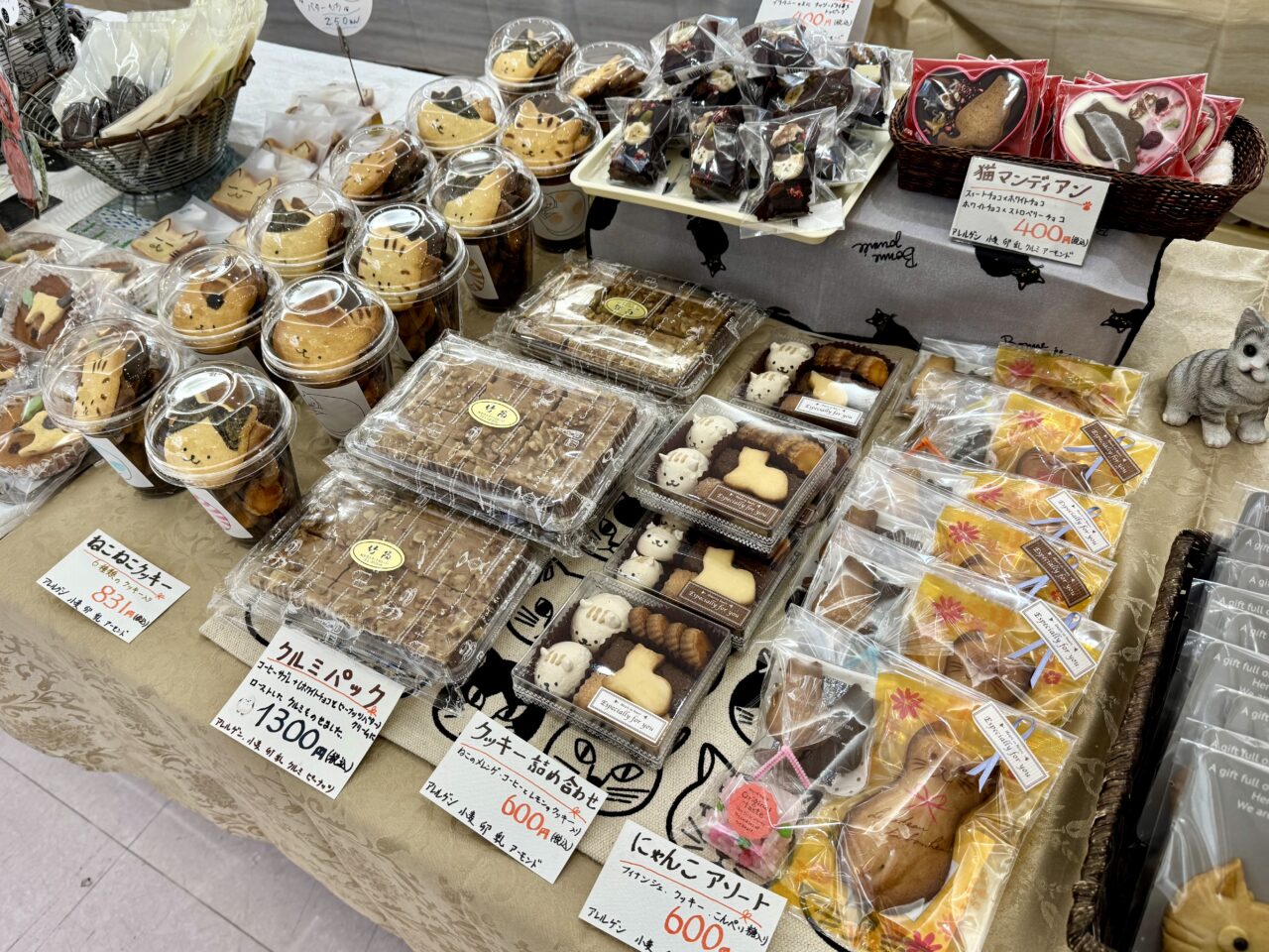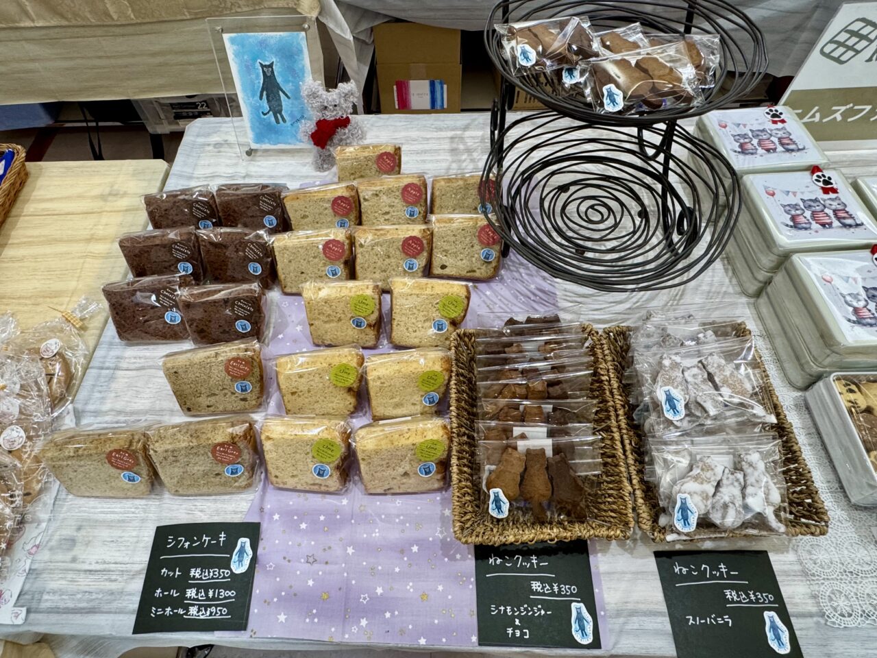 手作り菓子工房小さな気持ちのコーナーにはねこクッキーやシフォンケーキもたくさんありました。