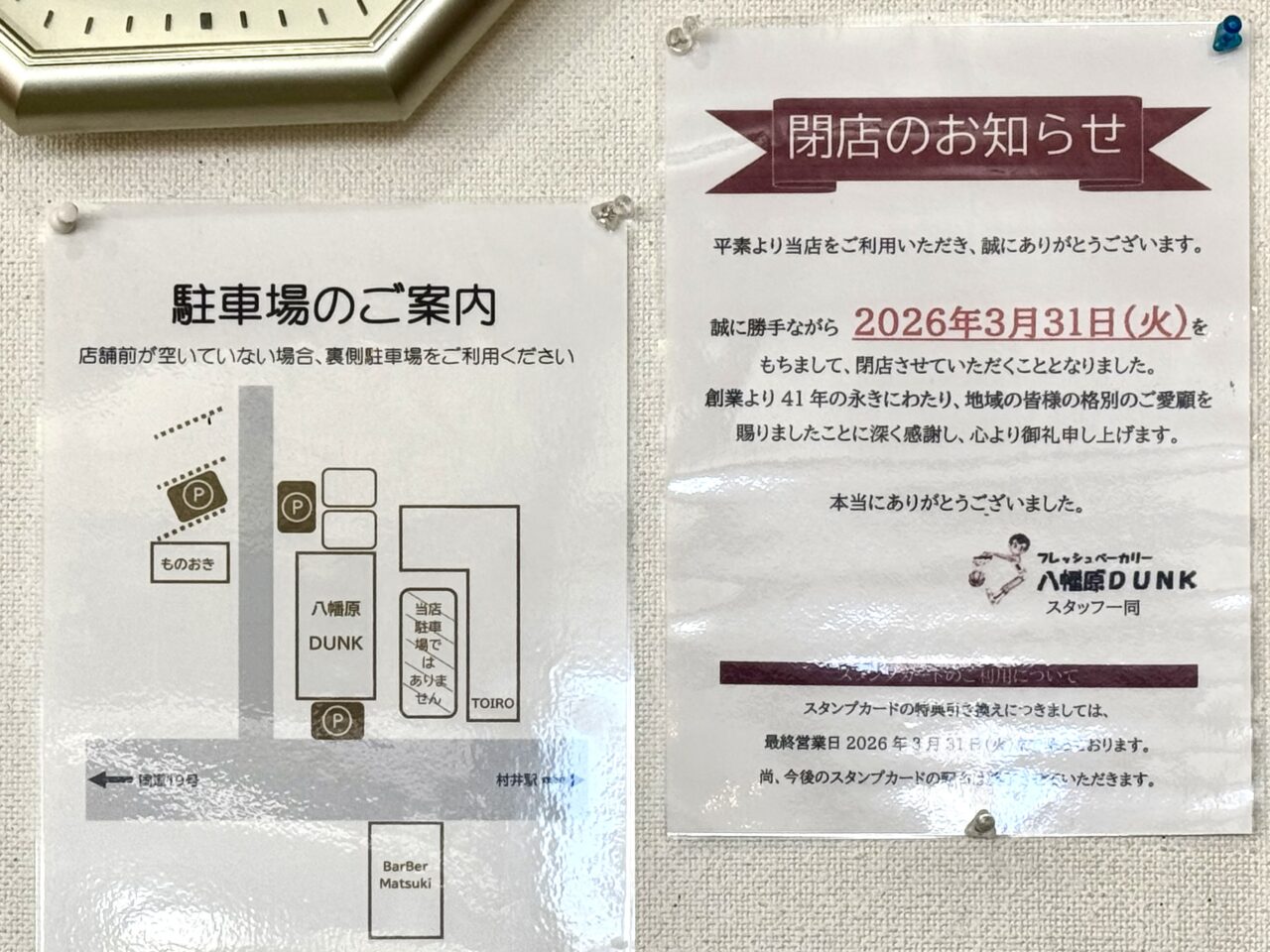 創業から41年という長い間、村井駅前で美味しいパンを提供してくれた「八幡原Dunk」さんに感謝ですね。
